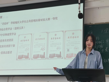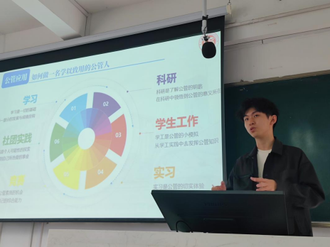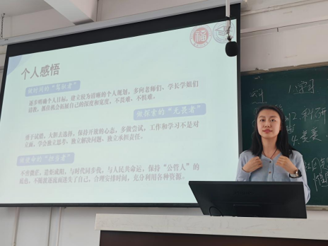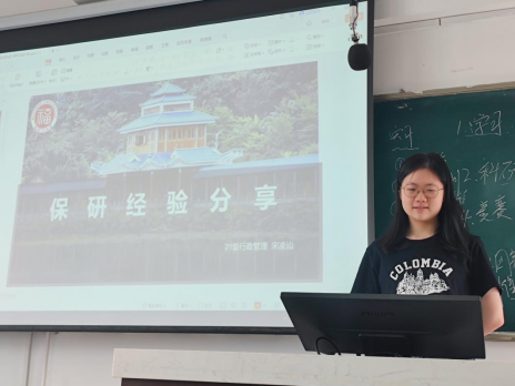 活动伊始,段锴丰老师发表了讲话,鼓励同学们珍惜大学时光,并希望新生们可以在学长学姐经验分享中有所收获。随后,六位成功保研的学长学姐分别分享了他们对于公共管理类专业学习的经验和感悟。