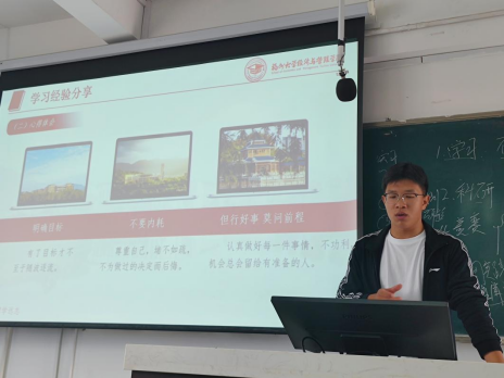 马晓军同学,已保送至武汉大学。马晓军同学从三个方面就保研和学习经验与学弟学妹们进行了深入的分享:首先,他强调了制定计划和明确目标的重要性,指出有的放矢的目标感是高效学习的关键。其次,他鼓励大家在学习和生活中减少内耗,保持积极向前的心态,遇到困难也要迎难而上,不要过度纠结于当下的困境。最后,他分享了自己的学习观,倡导但行好事,莫问前程,提醒同学们在学习过程中不要过于功利,保持对知识的热爱和追求。